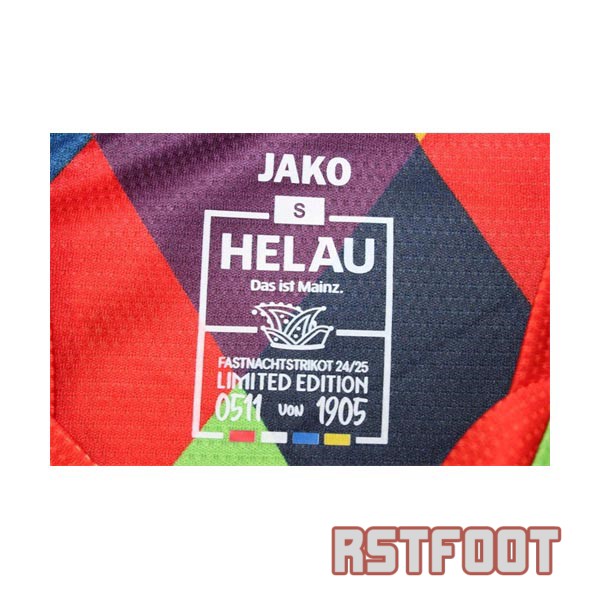 maillot fsv mainz 05 2024-2025 edition speciale Fastnacht bleu orange rouge